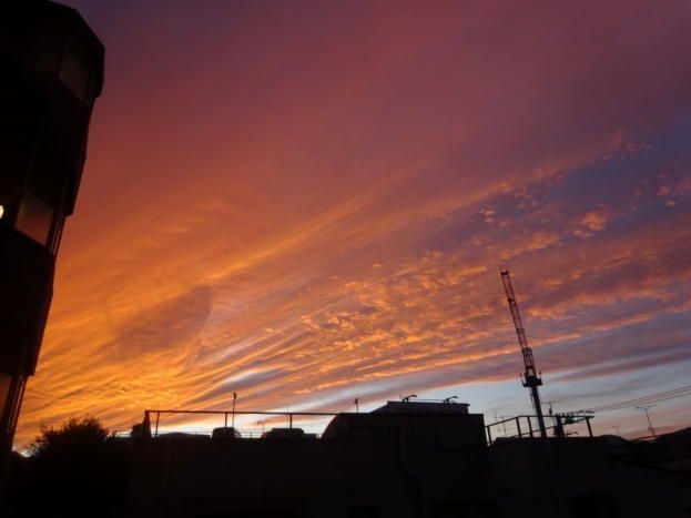 夕焼けが奇麗だったので撮ってみた。 工事現場のクレーンが邪魔。