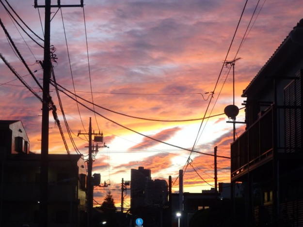 今日も夕日がきれいだった。 正面の高いビルは武蔵小杉のタワーマンション群