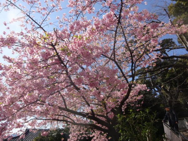 池上本門寺山門脇の早咲きの桜は既に満開。