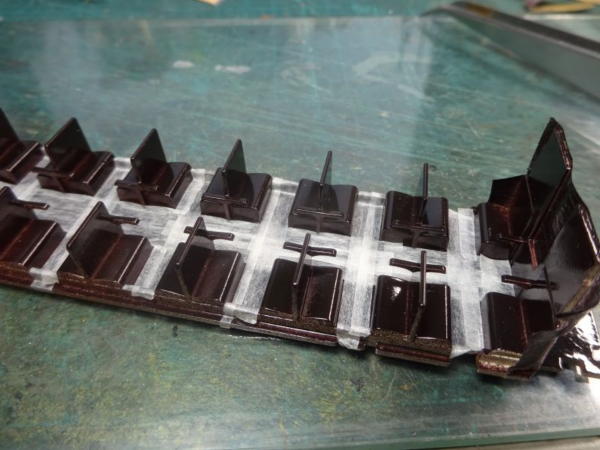 一体パーツのためフレームとデッキが同じ茶色なので塗り分け。